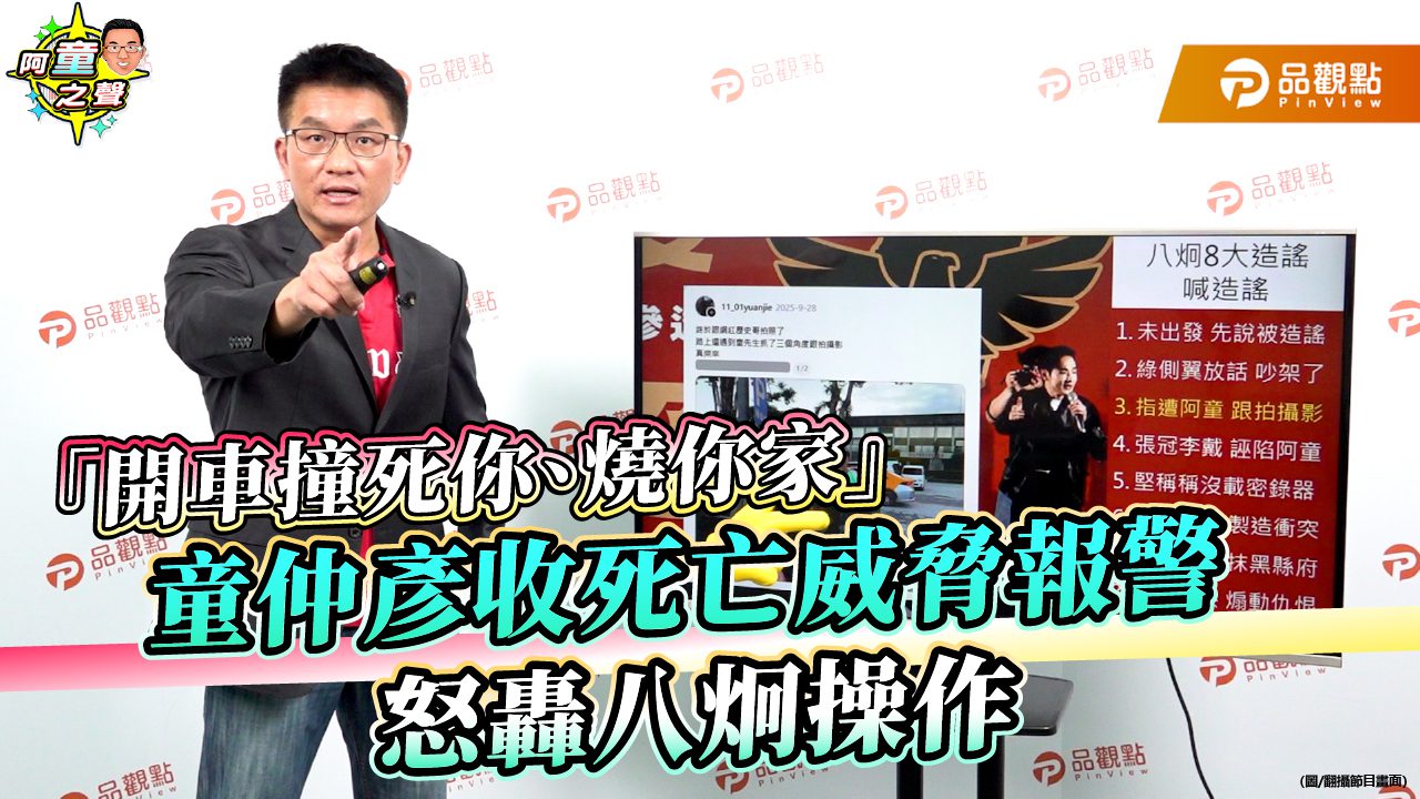 童仲彥在節目中出示多則恐嚇訊息,包括有網友詛咒其家人、寄送白包奠儀照片,甚至有人留言「白包要包給你家人多少」等威脅。他表示,因八炯不斷操作「反共」議題,將批評者打為「支那豬」,煽動支持者進行人身攻擊。童仲彥批評八炯使用「納粹手法」操作極端國族主義,用意識形態挑動仇恨。