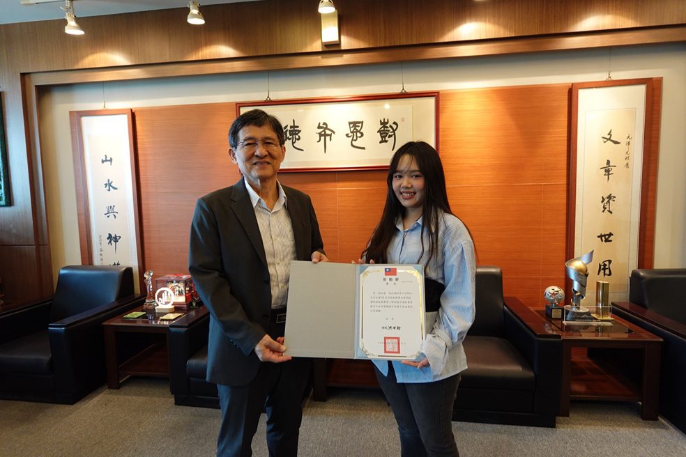 校長王昭雄也特別勉勵林怡萱,要把握大學四年的學習機會,充實專業與實力,未來成為業界最閃亮的一顆星。他強調:「把孩子交給樹德科大,學校一定能培育出最有競爭力的人才。」