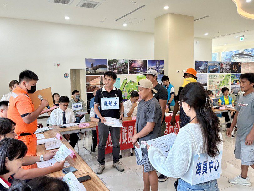 高雄市政府海洋局10月8日於前鎮漁港船員會館辦理「颱風期間漁船進港及船員避風演練」,共動員市府團隊、海巡署、漁業署、漁會、本市三大遠洋公會及遠洋漁業業者等單位共襄盛舉,特別感謝財團法人中華民國佛教慈濟慈善事業基金會及臺灣基督長老教會海員漁民服務中心來協助,提供福慧床及翻譯量能,使整個模擬演練過程順暢逼真,充分展現各單位防災應變處置能力,以確保颱風期間漁船進港及船員生命安全。