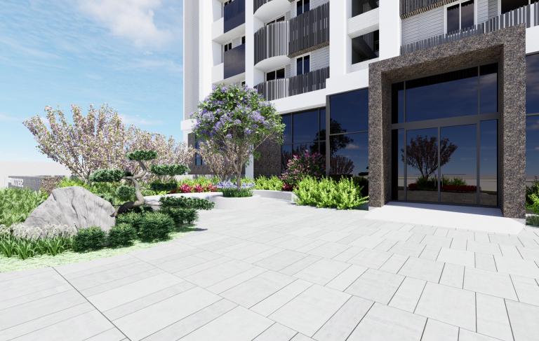 ▲嘉麗WINNER利用地形獨特性,大廳外側擇選耐候灌木、花草與開花喬木,如羊蹄甲、金鈴子,成為該區最獨特美景的社區。(圖/嘉麗建設提供)