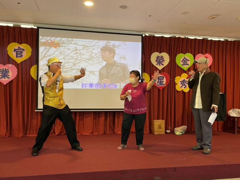 景官企業社林德利社長今日前帶領表演團體至新竹榮家,帶來精彩的「金牌歌星秀」,以經典金曲、趣味問答