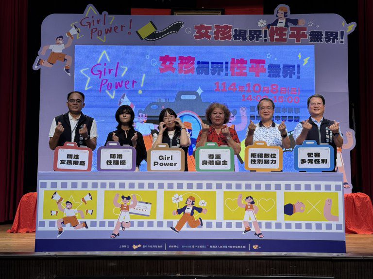 響應10月11日「臺灣女孩日」,臺中市政府社會局今(8)日委託社團法人台灣陽光婦女協會,於臺中家事商業高中舉辦「影像發聲:女孩視界!性平無界!」頒獎典禮暨映後分享會,邀請全場共同見證女孩以影像說出自我、勇敢無畏的力量。