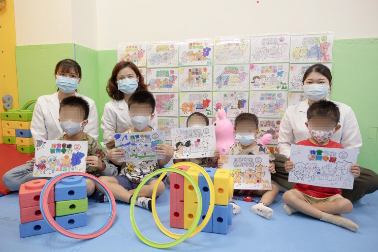 ▲員林市宏仁醫院復健科兒童早療課程,將「病人安全」概念融入兒童早療課程,透過遊戲、繪畫,引導孩子從小建立病人安全觀念。(圖╱宏仁醫院提供)