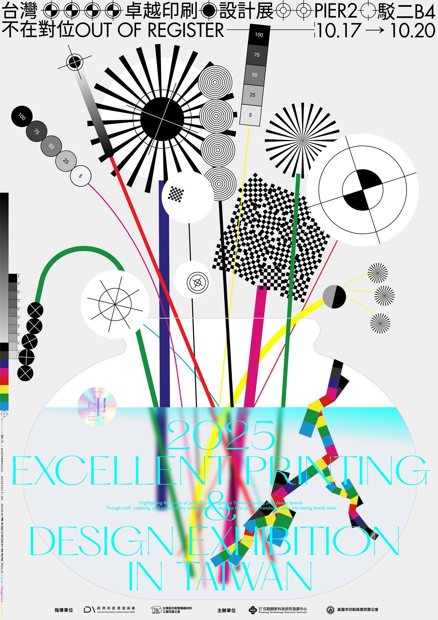 2025以「不在對位 OUT OF REGISTER」為主題,由「仰角視覺整合」周雨衛創意總監,擔任展覽視覺設計,其顛覆傳統印刷必須精準對位的觀念,將原本象徵瑕疵的「錯位」重新定義為設計語言,透過色彩、層次與排版的運用,展現活潑多變的視覺效果,打破工藝框架,讓印刷與設計在對話中激盪出新的可能。