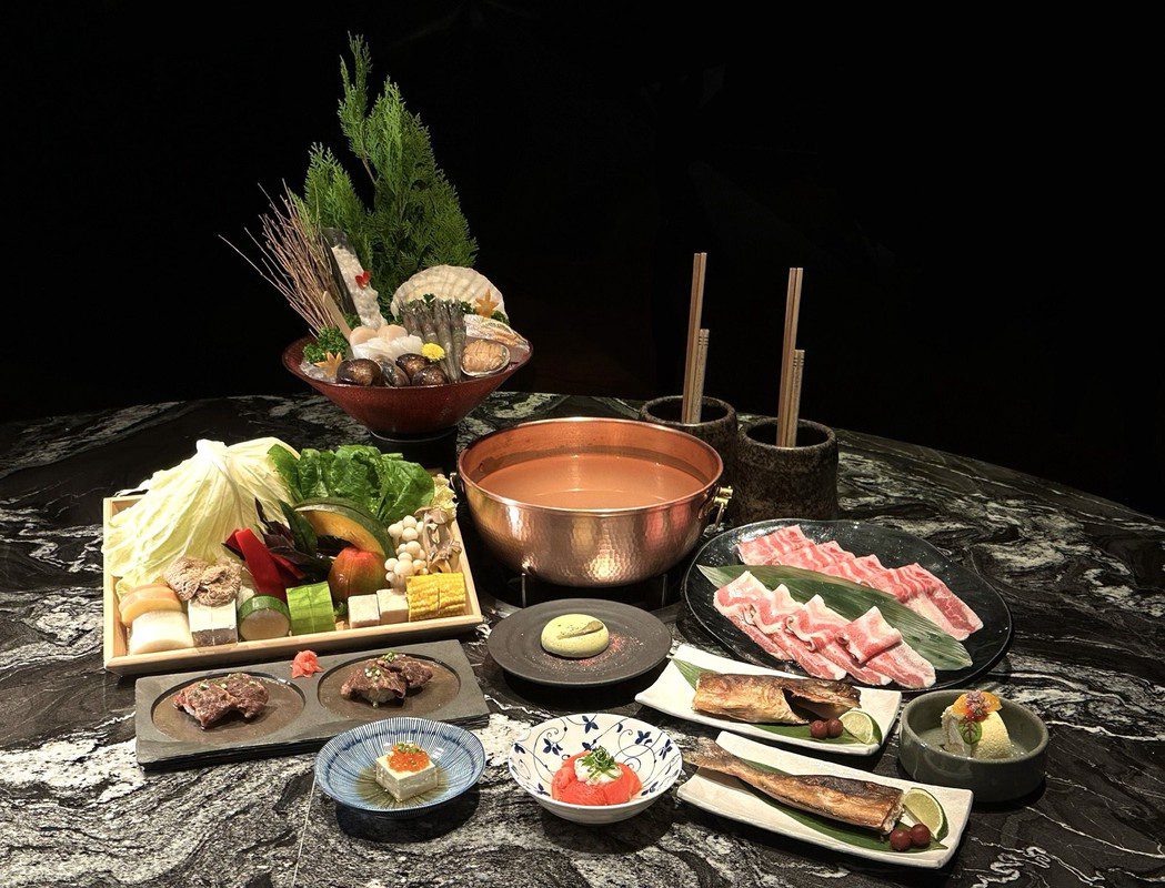 料理方面,以神戶和牛肋眼、澳洲和牛、伊比利豬及雲林黑臻豚為主角,並搭配北海道毛蟹、鱈場蟹與澎湖現流漁獲,超過八成食材皆為日本生食等級。特製的日式豚骨昆布湯,結合鹼性還原水與鰹節、昆布,湯底清甜襯托食材原味。沾醬則以柚子果醋與胡麻醬展現細緻巧思,完美搭配肉品與蔬食。