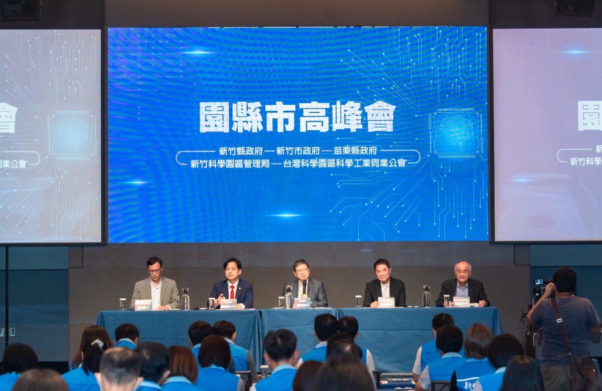 「園縣市高峰會」第11次會議,今(7)日在新竹豐邑喜來登大飯店舉行,由新竹縣長楊文科、新竹市代理市長邱臣遠、苗栗縣長鍾東錦、新竹科學園區管理局局長胡世民及科學工業園區同業公會理事長李金恭共同主持,會議聚焦產業發展、輕軌建設、市容環境、文創良品及親子活動推廣等議題,共同打造宜居永續的竹竹苗生活圈,為台灣科技產業發展注入新動能。