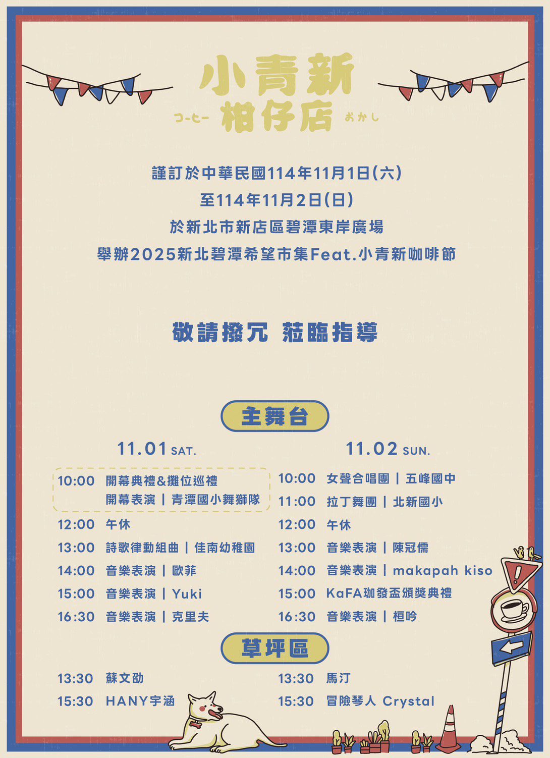 2025小青新咖啡節即將於11月1日至2日兩天在新北市新店碧潭風景區東岸廣場登場,今年以「復刻我們的柑仔店回憶」為主題,邀請民眾一起穿越時光,重拾那段單純又美好的台灣童年。