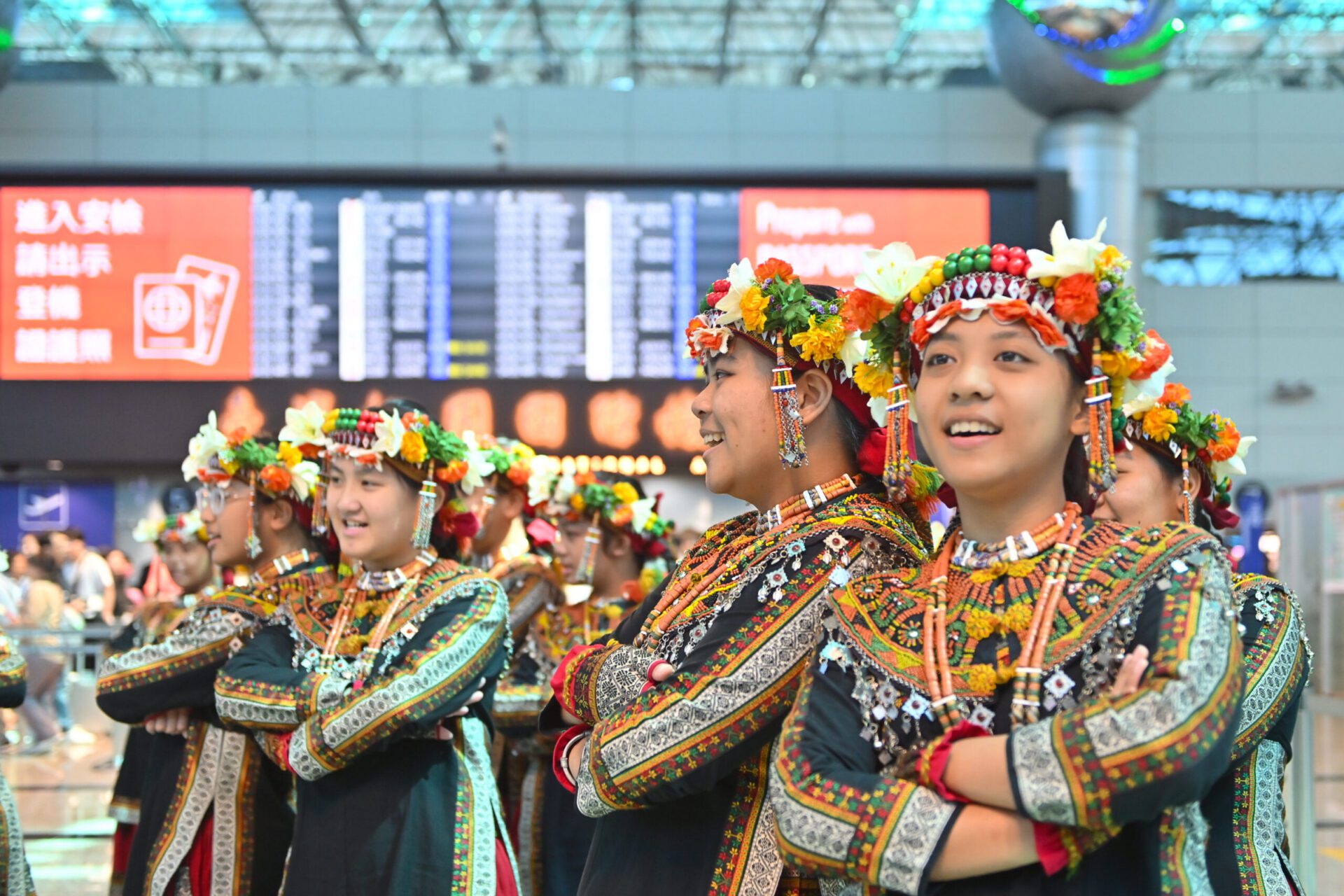 桃園機場公司於今(10)日於出境大廳、行李提取大廳、及報到櫃檯上方等處電子看板佈置飄揚國旗,與國家一同慶生,現場也特別邀請來自屏東三地門與瑪家鄉、享譽國際的 Puzangalan 希望兒童合唱團,於第二航廈報到大廳及出發管制區演出,為候機旅客獻上充滿國慶特色與臺灣在地原住民色彩,共渡一段溫馨的音樂時光。