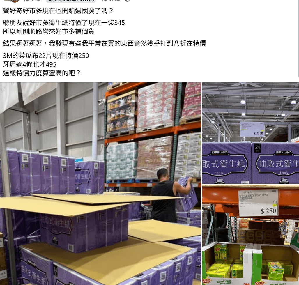 值得注意的是,這次好市多配合台灣連假推出專屬促銷活動。有會員表示「去年好像沒有?所以好市多也開始過節了?」也有人認為「總是要因地制宜的有節慶特價啊」,顯示外商賣場逐漸融入在地節慶文化的趨勢。