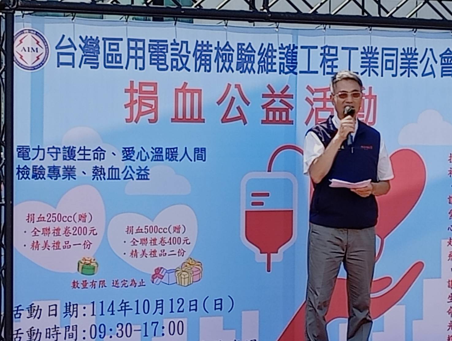 台灣區用電設備檢驗維護工程工業同業公會業務發展委員會錢新 標主委指出,血液是無法以人工製造取代的珍貴資源,每一袋血液都代 表一份希望。他強調,本次捐血活動不僅是一項公益行動,更是社會責 任的具體展現,並誠摯呼籲民眾踴躍參與,為醫療體系注入能量,讓愛 心與希望在社會中持續擴散。