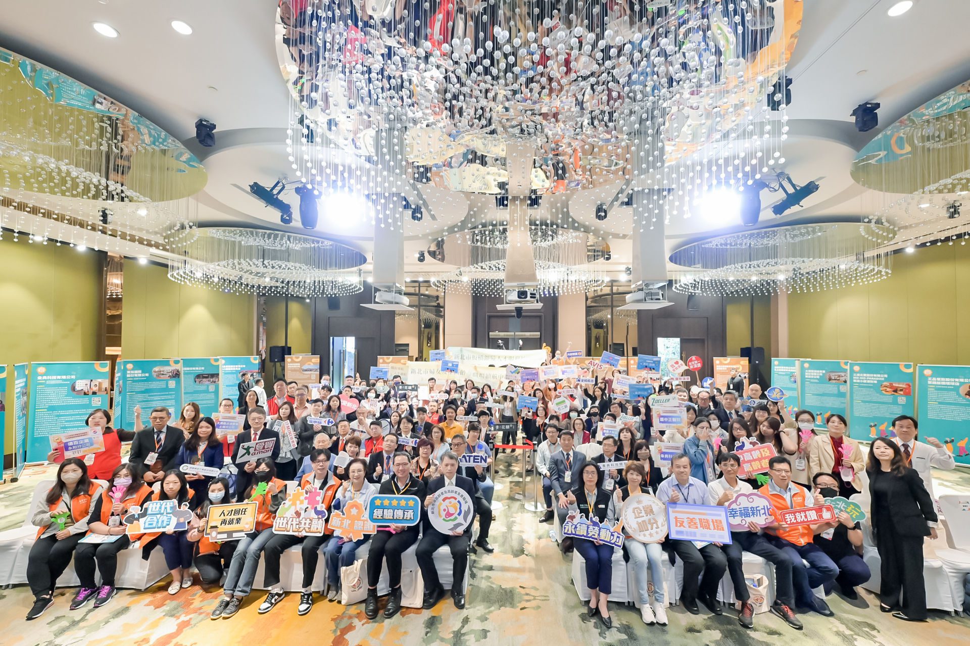 陳瑞嘉頒發獎座表揚獲「中高齡者及高齡者友善職場認證」的37家事業單位,不少獲證單位還自備攝影師和啦啦隊,並邀請中高齡員工一同出席,讓活動現場氣氛活潑熱鬧。