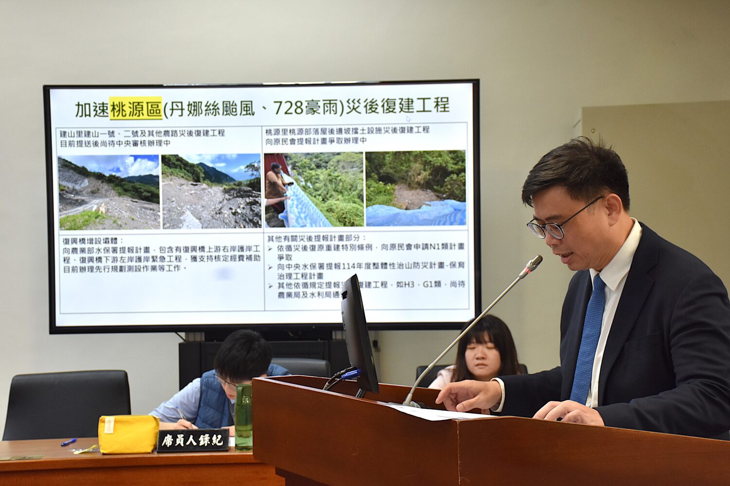 立法院經濟委員會今(13)日進行「丹娜絲颱風及七二八豪雨災後復原重建情形」專案報告,立委賴瑞隆指出,該次颱風豪雨重創高雄山區,桃源、茂林、那瑪夏三區道路坍方、橋梁沖毀、部落排水受損,高市府已提報災後重建計畫,經費需求達20億3,621萬元,盼中央儘速核定。賴瑞隆於質詢時向農業部長陳駿季、經濟部長龔明鑫、原民會副主委谷縱以及交通部次長陳彥伯爭取支持,四部會均允諾全力協助,並以「核定加速、經費從寬」原則辦理。