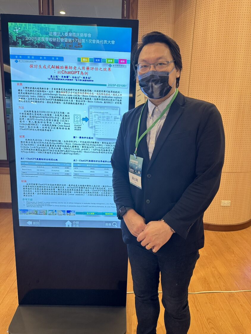 【焦點時報/記者張彥勳埔里報導】臺中榮民總醫院埔里分院藥劑科黃士鳴主任,運用生成式人工智慧(Generative AI)技術,開發老人用藥評估輔助工具,並於2025年臺灣臨床藥學會舉辦的年度學術研討會發表壁報論文。
