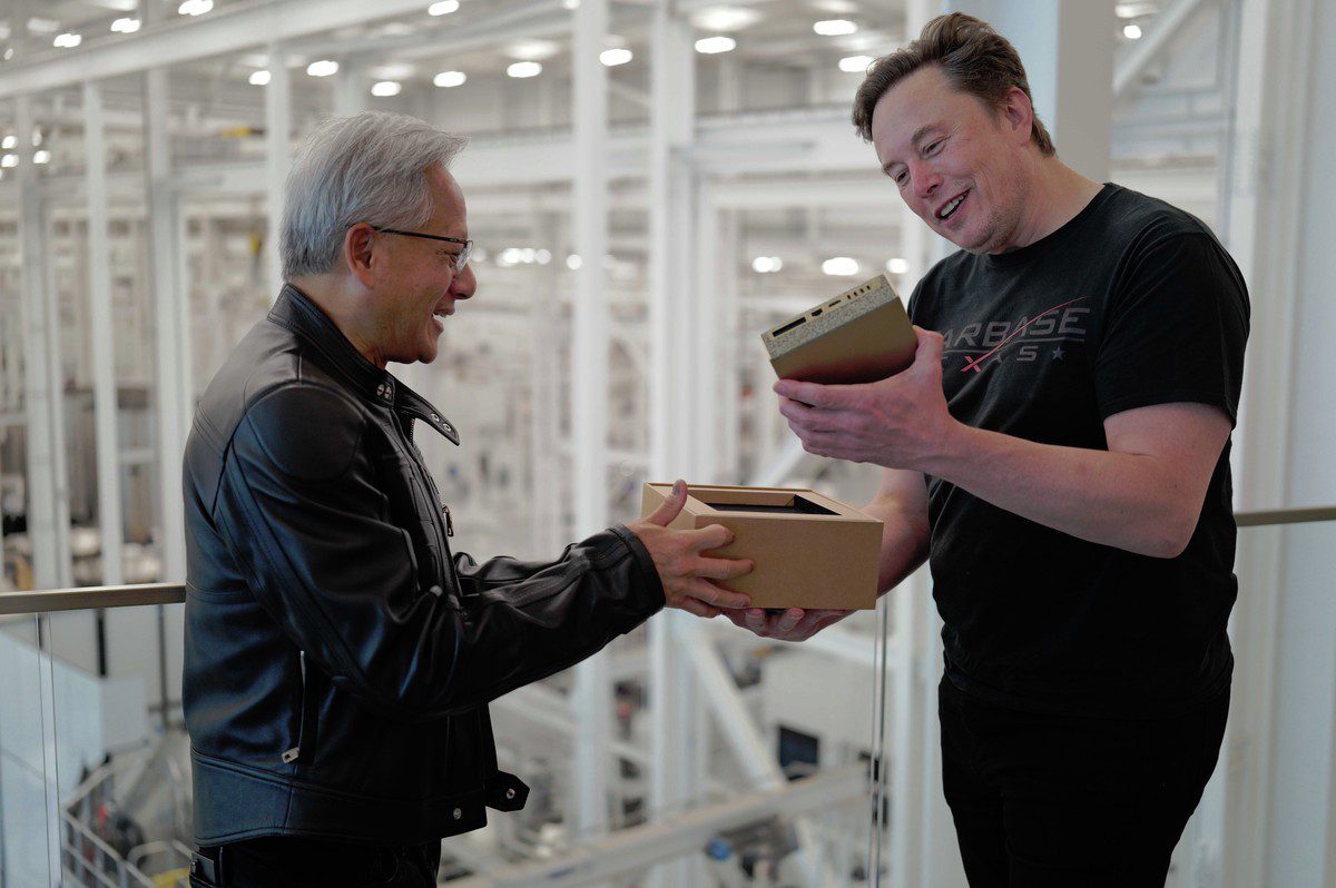 輝達(NVIDIA)創辦人黃仁勳親自將全球最小的AI超級電腦DGX Spark交付給特斯拉執行長馬斯克(Elon Musk)。圖/輝達X帳號