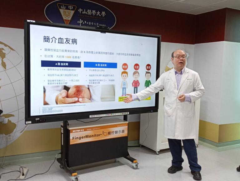 ▲翁主任說明血友病。(圖╱記者孔亮云攝)