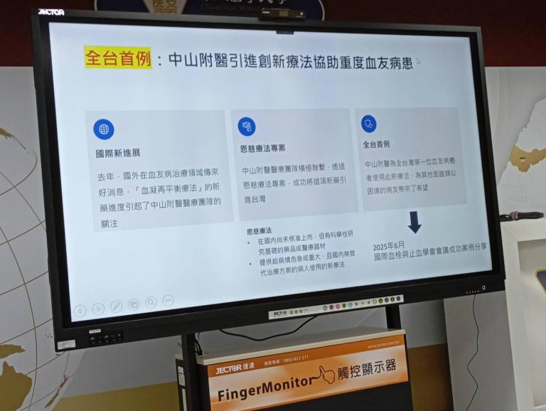 翁主任強調,如今,傅先生能操作電動輪椅在台中街道自由穿梭,從家裡到醫院不需他人協助,甚至能獨自搭乘高鐵參與各地活動。新藥的出現,不僅改善了病情,更讓他重新掌握生活自主權,象徵血友病治療的一大突破。