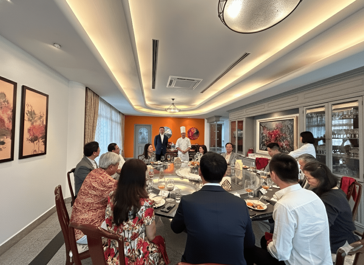 童振源大使將官邸化身為美學餐桌,將台灣蔬食藝術徹底呈現,10月14日在官邸舉辦了兩場「蔬食美食饗宴」,這2場盛宴是融合了文化、藝術與商機的盛會,現場邀集新加坡企業家、餐飲界領袖及媒體代表出席,餐會中每一道料理食材,都是從台灣攜帶而來,以當令新鮮蔬果為主軸,融入松露、花卉與天然香料,並結合美學設計與創意擺盤,呈現出層次豐富、色香味俱全的蔬食盛宴。不論色彩、香氣到口感,參與盛宴賓客都無不驚嘆蔬食的細膩與多變,深切感受到台灣飲食文化的創造力與包容性。