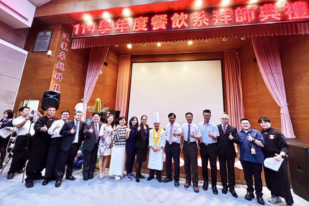 【焦點時報/記者羅蔚舟報導】敏實科技大學餐飲管理系今(10/15)日於定一樓國際會議廳,隆重舉辦年度的「拜師禮」活動,全體餐飲系師生、越南南向班、國際專班、日本常磐大學及樂齡大學的同學共同參與,同時並特別邀請享譽國際的國宴主廚阿基師(鄭衍基)擔任嘉賓,突顯敏實科大校方非常重視這場拜師禮「達人薪傳、術德兼修」意義,而這場尊師重道的盛會,不僅傳承廚藝精髓,更注入職業精神與人文關懷,激勵學子在餐飲界砥礪前行。