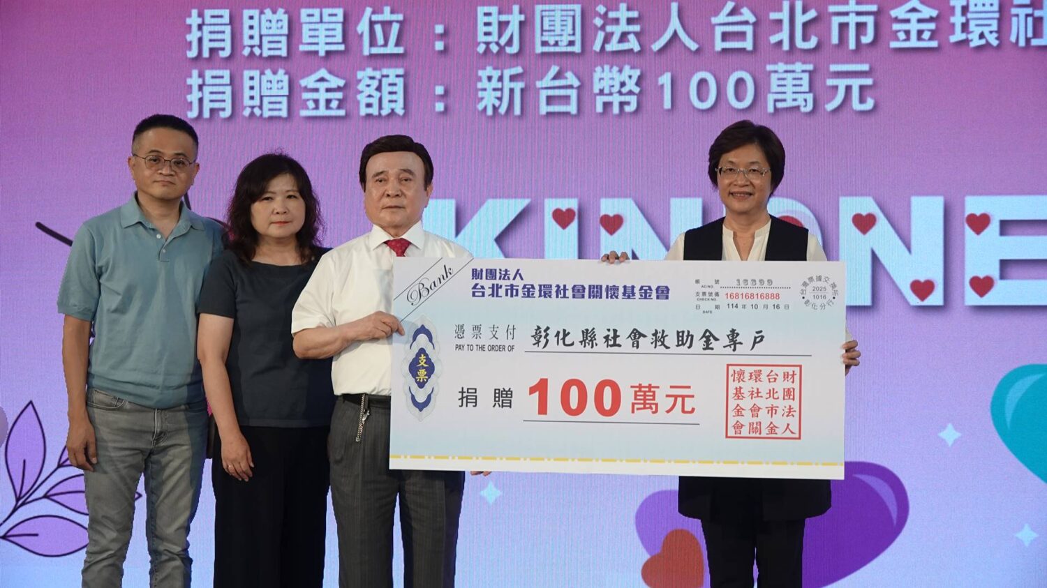 【焦點時報/記者林明佑報導】新北市彰化同鄉總會總會長洪靜姿、榮譽總會長洪松廷與財團法人台北市金環社會關懷基金會董事長洪村山,今(16)日返鄉捐款新台幣壹佰萬元,支持彰化縣社會救助工作,以實際行動回饋家鄉。縣長王惠美感謝洪董事長長年旅居外地仍心繫故鄉,以善行溫暖在地弱勢族群。