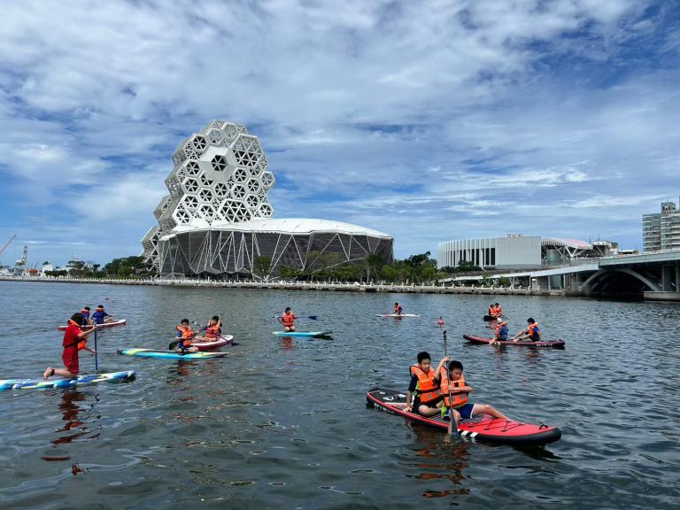活動還延伸至愛河灣水域,在愛河灣水樂園體驗SUP立槳、獨木舟、水上腳踏車,以及充滿挑戰的「水上拔河」與「划艇協作賽」等,讓港灣水域化身為充滿活力的海上運動場,也讓民眾藉此欣賞海洋首都的港灣天際線美景,距離市區最近的水上休閒體驗就只有高雄才有!