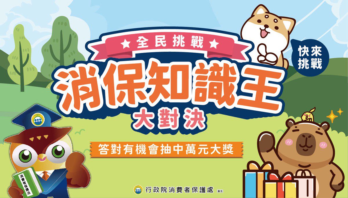 為了深化全民消費者教育,行政院推出亮點活動:「全民挑戰‧消保知識王大對決」線上有獎徵答。從校園到社會,活動以寓教於樂方式,帶領民眾提升消費知能,強化權益意識。