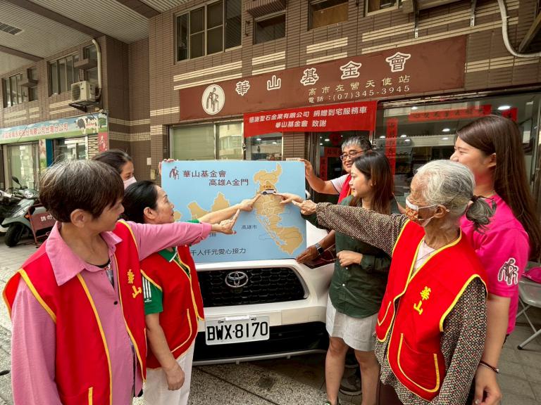 聖石金業有限公司支持公益,關懷孤老,於昨(17日)上午10點在左營1天使站慷慨捐贈一輛全新到宅服務車,為在地孤老注入一股暖流,呼籲各界為高雄市A區(原高雄市)及金門地區的10個天使站汰換老舊服務車,讓「天使的翅膀」持續飛翔。聖石金業有限公司南區營運長黃美芬女士親臨現場,在「到宅服務車募集地圖」上貼上第1張「馬上成功」貼紙,象徵高雄A區第1輛到宅服務車募集任務啟動。由站長駕駛新車,載長輩外出體驗,長輩們滿臉笑容、氣氛溫馨。聖石金業有限公司的善舉,成為華山守護長輩的堅實後盾,也喚起社會各界送愛孤老。黃美芬營運長表示,公司秉持ESG永續精神,將善意化為具體行動,不僅親力親為帶領同仁參與義工活動,捐助年菜與發送中秋物資,更以捐贈到宅服務車的方式,支持前線服務,期盼讓愛的力量走得更遠、更長久。