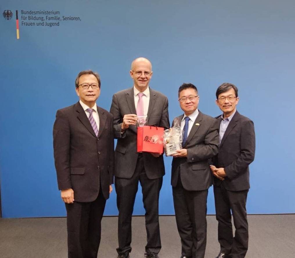 衛生福利部呂建德次長於10月11日至15日率團訪問德國,先後拜會德國聯邦教育、家庭事務、老年、婦女及青年部(BMFSFJ)政務次長Michael Brand、聯邦國會健康委員會副主席Dr. Stephan Pilsinger、聯邦衛生部(BMG)政務次長Dr. Georg Kippels,以及羅伯特科霍研究所(RKI),就健保、長照、少子化與防疫合作等議題進行廣泛交流。