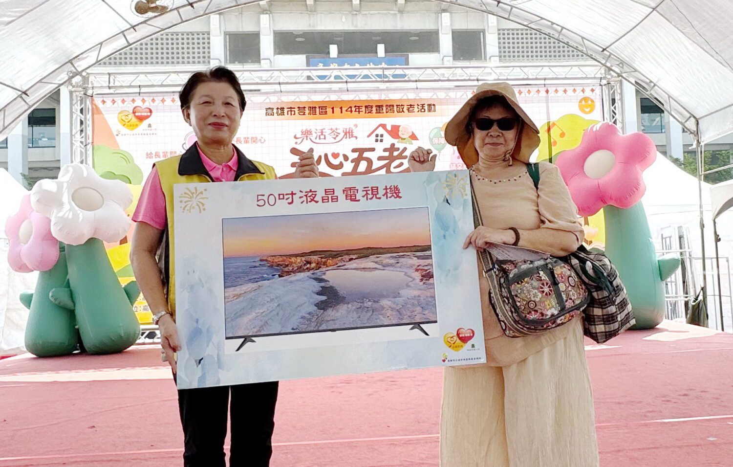 今年的重陽敬老活動節目表演精彩、攤位多元熱鬧。本次活動特別感謝高雄市苓雅寮萬應公廟贊助提供每位到現場的長輩一份紀念品,二日活動現場各備有象徵健康久久的摸彩贈品,讓「參加者皆有獎」,邀請長輩「看表演、抽大獎」快快樂樂歡度重陽節。