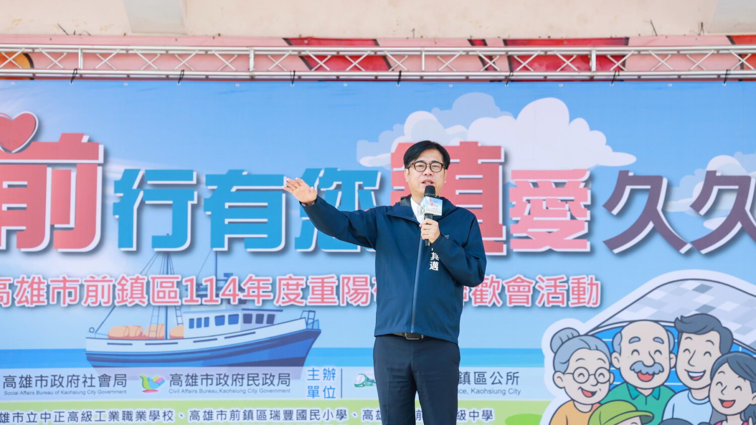 陳其邁表示,非常高興能來到前鎮區與長輩們一起過重陽節,這是市府每年最重要的活動之一。他指出,市府推動的長照政策包括570處社區關懷據點、578個C級巷弄長照站,以及146個日照中心,這些都是照顧長輩的重要服務網絡。