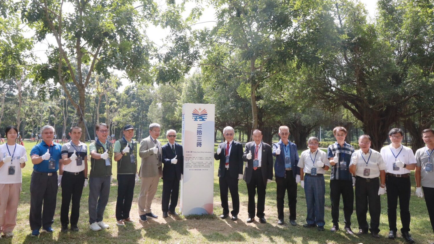 活動當日上午於第一校區行政大樓東側廣場舉行「三拾三蒔」風鈴木園區揭牌暨植樹儀式,由高科大楊慶煜校長、第一科大創校校長谷家恆、前校長陳振遠、高科大校友總會朱溥霖總會長及歷任理事長、副校長、院長、系主任、系友會長等共同植下三十棵紅花風鈴木。風鈴木象徵「希望」與「珍惜當下」,園區以三十棵風鈴木為起點,寓意第一校區三十年的耕耘與成長。「三拾三蒔」結合「三十週年」與「蒔」的播種之意,象徵珍視過去、播種未來,展現高科大延續教育精神與永續發展的決心。