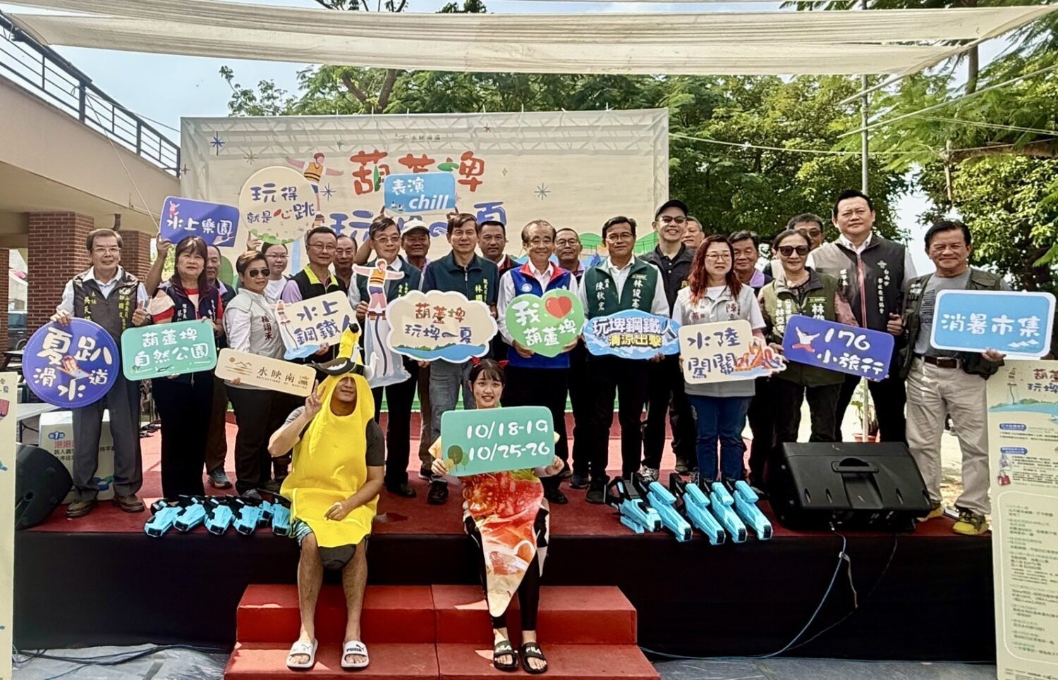 為打造官田區葫蘆埤的埤塘水域遊憩品牌,臺南市政府觀光旅遊局爭取交通部觀光署補助,於今(18)日在葫蘆埤自然公園舉辦「葫蘆埤玩埤一夏」水域遊憩系列活動熱鬧開幕。開幕首日主打南臺灣唯一「水上鋼鐵人飛行特技秀」,以震撼的水上飛行特技演出驚豔全場,現場驚呼不斷,現場熱鬧滾滾,氣氛熱絡。活動將持續舉辦兩個周末假期(10/18-10/19、10/25-10/26),期間同步展開豐富多元的水陸闖關、氣墊滑水道、水霧步道、餐車市集,與精彩表演,打造南臺灣最熱血吸睛的水陸狂歡派對,歡迎大小朋友前來同樂。