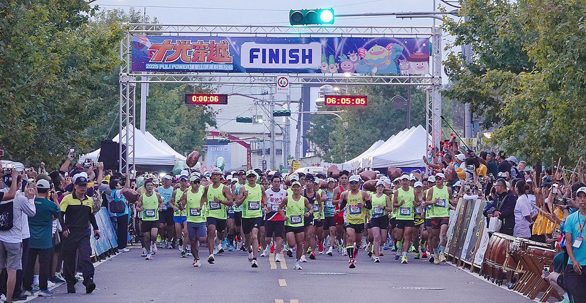 2025 Puli Power埔里山城派對馬拉松「十光穿越」19日清晨熱鬧登場,吸引全台4,500名跑者齊聚南投埔里,以奔馳迎接賽事十週年。今年首度開放國道6號西行線埔里段作為賽道,跑者在晨曦中從高速公路俯瞰山水景致,成為全場最受矚目的亮點。