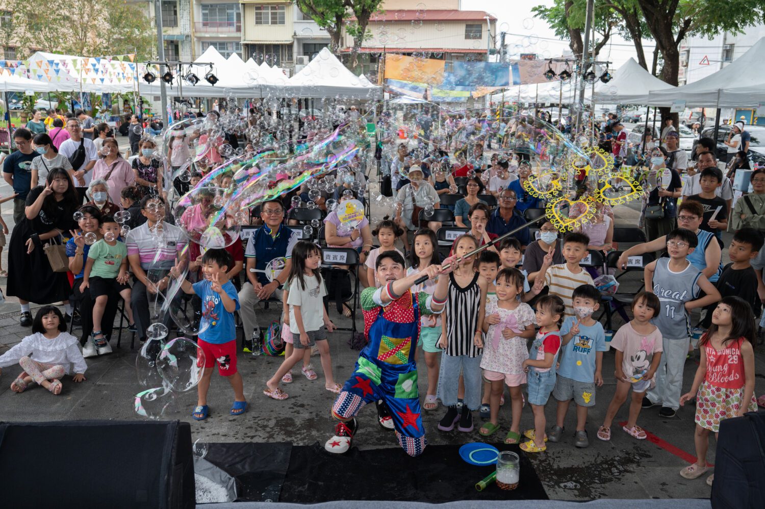 舞台表演也精采連連,美濃婦女合唱團以悠揚歌聲開場,大獅兄家族人偶劇團帶來《HAKKA歡樂舞蹈秀》炒熱氣氛,曹忠美與黃少康以歌聲唱出對土地的深情,互動泡泡秀及魔術表演讓現場笑聲與驚呼聲不斷。壓軸的豆子劇團經典劇作《搗蛋王子》更以戲劇、故事與客語交織,為活動畫下熱鬧又溫馨的句點。