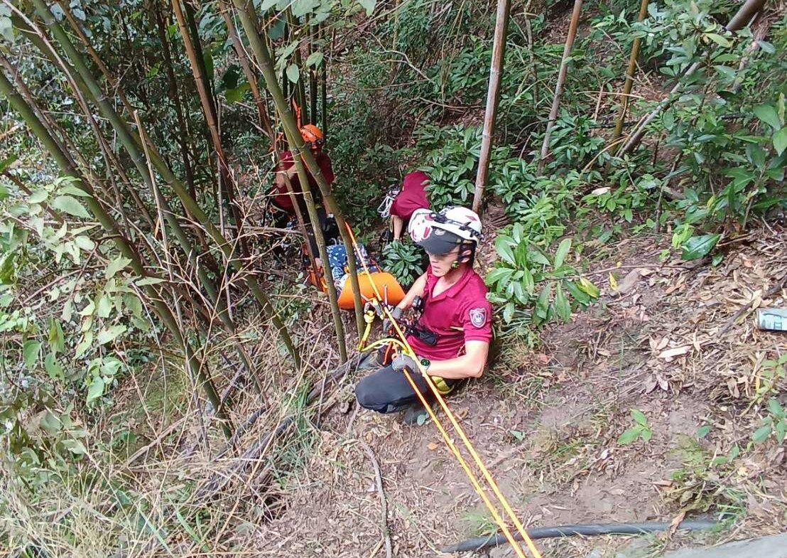 桃園市昨(19)日有民眾於復興區華陵里上巴陵哈凱農路不慎摔落約15公尺邊坡處,導致大腿疑似骨折,且頭部有撕裂傷,所幸意識清楚。消防局第四大隊巴陵分隊獲報後立即出動巴陵93、861及862等3部車輛及5名消防人員前往救援,將傷者送往國軍桃園總醫院救治。