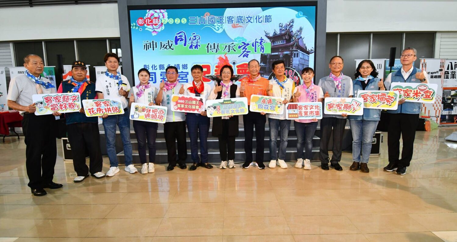 【焦點時報/記者林明佑報導】彰化縣三山國王客家文化協會自91年開始整合縣內三山國王廟,由39座「三山國王宮廟」擲筊舉辦活動,至今已邁入第24年。今年由永靖鄉同霖宮辦理,將於10月25、26日舉行2025「彰化縣三山國王客底文化節」,今(20)日上午在縣府中庭舉辦記者會,縣長王惠美、三山國王客家文化協會會長胡祥畯、同霖宮主委黃一清等人邀請民眾參與,屆時將有39間三山國王廟共117尊神尊齊聚同霖宮,讓信眾一次獲得所有神明的庇佑,期盼透過活動彰顯客家族群的心靈寄託,也讓大家更認識永靖客庄。