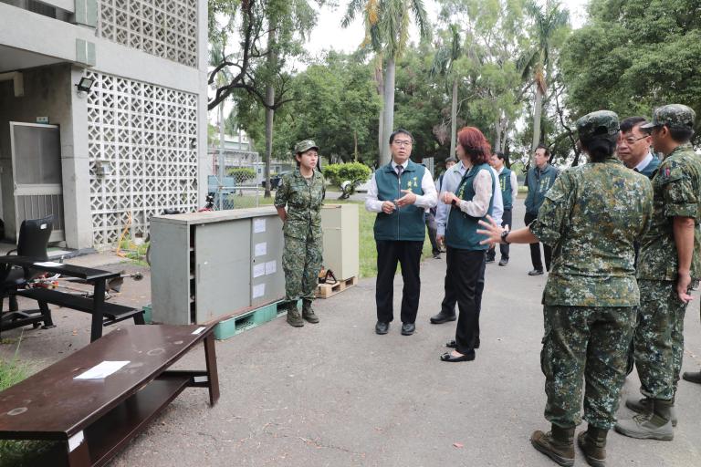 ▲台南市長黃偉哲至陸軍砲兵訓練指揮部永康校區關心部隊搬遷作業情形。
