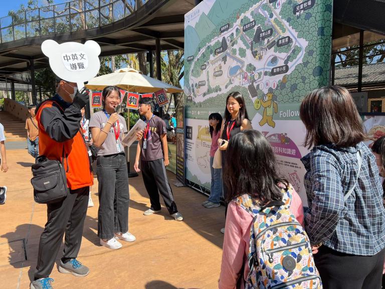 ▲美國學校學生進行雙語導覽服務。(圖/觀光局提供)