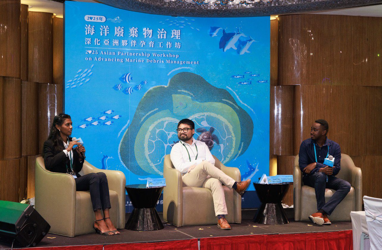 此外,3位得獎者亦於「2025海洋廢棄物治理深化亞洲夥伴孕育工作坊」期間親身參與製作桌上「海洋廢棄物清除船」模型,並表示海廢治理不僅止於教育推廣,更需實際投入清除工作。無論是設置無人化清除裝置,或動員人力進行淨海清理,皆是推動成效的重要環節。他們也指出,海洋廢棄物治理範疇廣泛,從源頭減量、清除淨海、回收利用、環境教育到國際交流,皆需協同推進,方能有效守護海洋環境,實現永續發展目標。