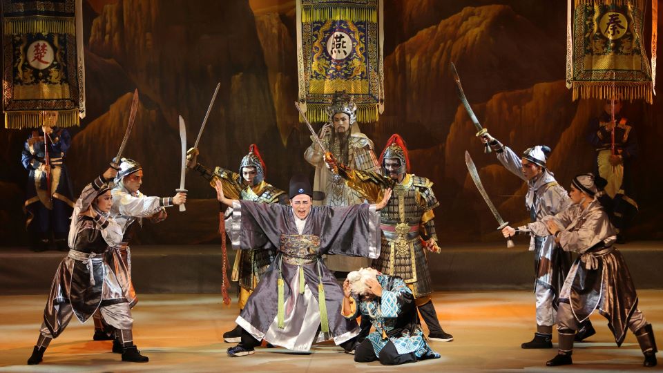 本次演出明華園黃字戲劇團帶來精彩好戲《三抄府》,故事起自孫臏與龐涓相識於雲夢山,雖為同門師兄弟,但龐涓忌憚孫臏的才能,在龐涓出仕魏國,擔任魏惠王之將軍後,派人將孫臏騙至魏國,且捏造罪名將孫臏處以臏刑,為了保住性命孫臏便開始裝瘋,魏國大夫朱亥看出孫臏裝瘋,所以對其施以援手,將孫臏帶回家中,卻引得龐涓多次抄府。全劇唱作俱精,優美的身段與唱腔,展現歌仔戲的絕佳魅力。