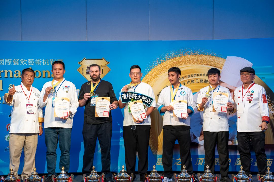 榕廷百匯餐廳的主廚鍾岱錡,以「靜態冷展類:手指小食靜態展示組」一舉奪得特金獎。他以臺南的特色景緻為靈感,創作了三道精緻小食:「武廟紅影・沙拉米火腿慕斯」、「億載潮光・潟韻牡蠣塔塔襯青蔬蜜凍與花生豆香」以及「鹽光醃香雞胸佐帕瑪火腿襯芥末雞汁與赤地薯糕」。這三道作品巧妙地融合了府城風土的溫度、山海柔光與獨特的文化氣韻,堪稱在地人文地景與頂尖廚藝創意結合的完美典範。