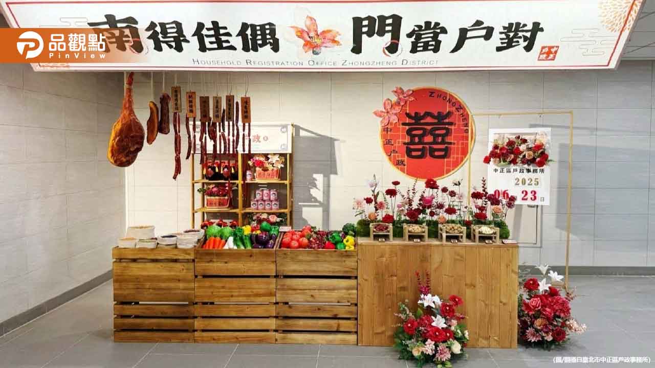 戶政事務所強調,這個背板不僅是拍照區,更是一段文化記憶的傳遞,以及對新人美好未來的祝福。他們以中正區的區花「木棉花」作為裝飾,寓意珍惜身邊人和眼前的幸福,並搭配紅色系花藝增添浪漫氣息。