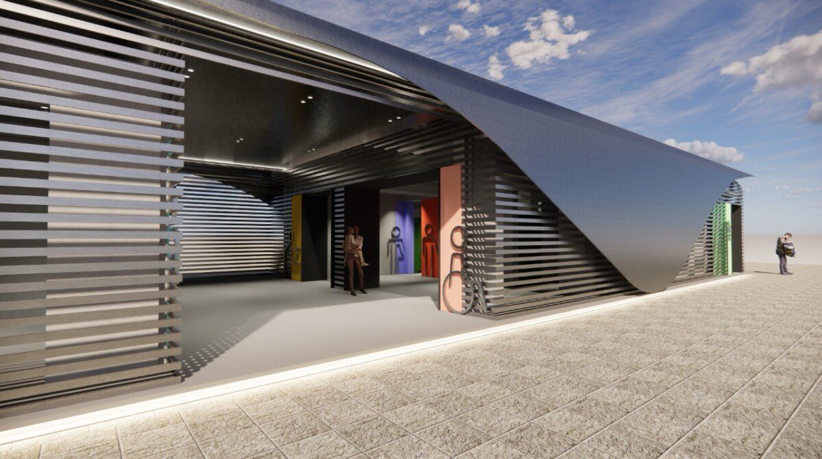產發處說明,南寮舊港公廁前身為南寮漁港漁具倉庫,經104年修繕公廁設備設施後,雖可滿足使用需求,但因觀光遊客增加,且因應氣候條件變遷、節能減碳、性別友善及智慧科技等重要政策,除原有之男(女)廁所、無障礙廁所及親子廁所外,另增設更衣室、性別友善廁所,並於無障礙廁所增設照護床及造口便座等多功能設施,提供給行動不便者或身體不適者,更加便利友善、舒適有尊嚴的如廁環境。南寮舊港公廁鄰近海洋,改造工程將以「海洋」為主要外觀語彙,再融入「風、洄、埠」的設計概念,扣合南寮漁港自然與人文元素,展現文化意象與自然之美。