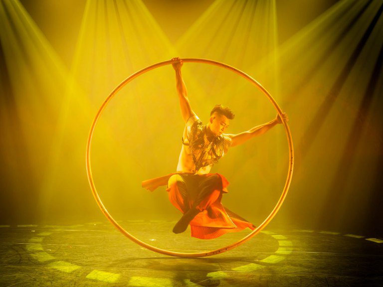 活動當日首先登場的「神劍藝術」以東方武俠為核心,融合LED光影與程式燈光技術,呈現跨界特技劇《劍鈴幻影:雙俠問道》,展現動作美學與哲理意象的完美結合;而「即將成真火舞團」則以火焰與節奏打造磅礡大秀《焰環行者:時空裂縫的召喚》,火光在夜空中飛舞,象徵高雄港灣的熱力與能量,為星光水岸揭開耀眼的序幕。
