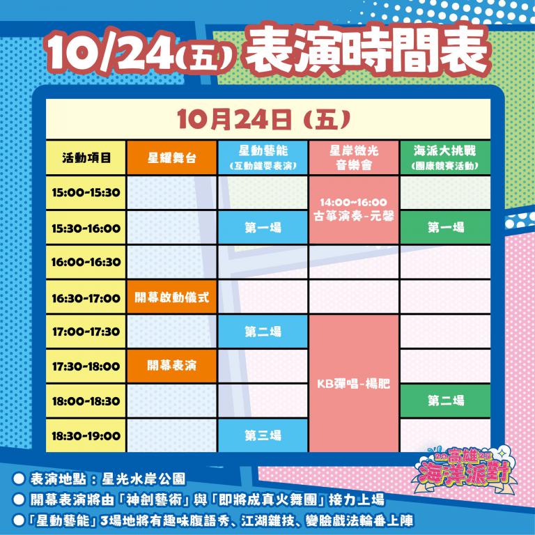 ▲2025高雄海洋派對開幕日演出時刻表。(圖/海洋局提供)