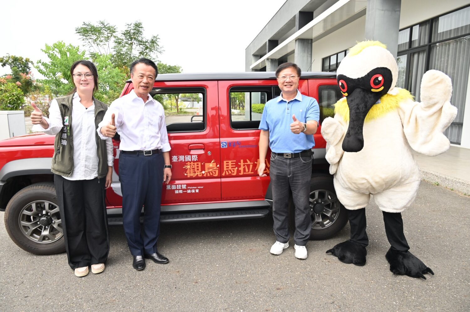 記者會現場也特別展出2臺「3D翼翔號」讓貴賓們搶先體驗操作,並在展場門口展示一台黑面琵鷺彩繪塗裝的賞鳥專車特別令人驚豔,令現場去年曾經參加過觀鳥馬拉松親子組的小女孩直呼今年一定要搭乘這台彩繪專車去體驗賞鳥導覽遊程。