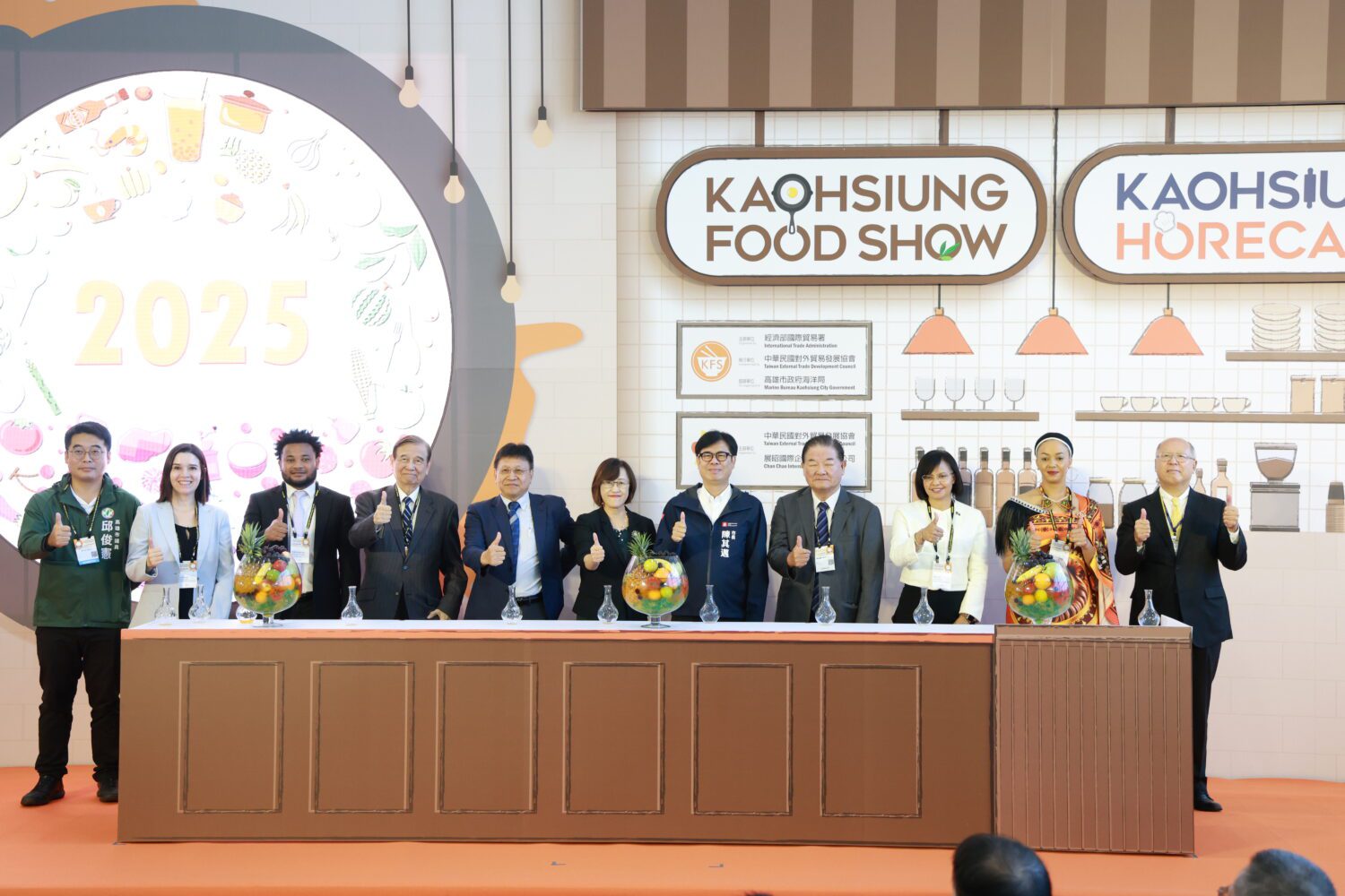 陳其邁感謝經濟部國貿署、外貿協會長期支持高雄國際食品展,今年已邁向第19年,是高雄市政府行銷高雄優質農漁水產品最好的平臺,他更特別感謝43家參展的高雄在地業者,預祝所有廠商都能夠熱賣成功、生意興隆。