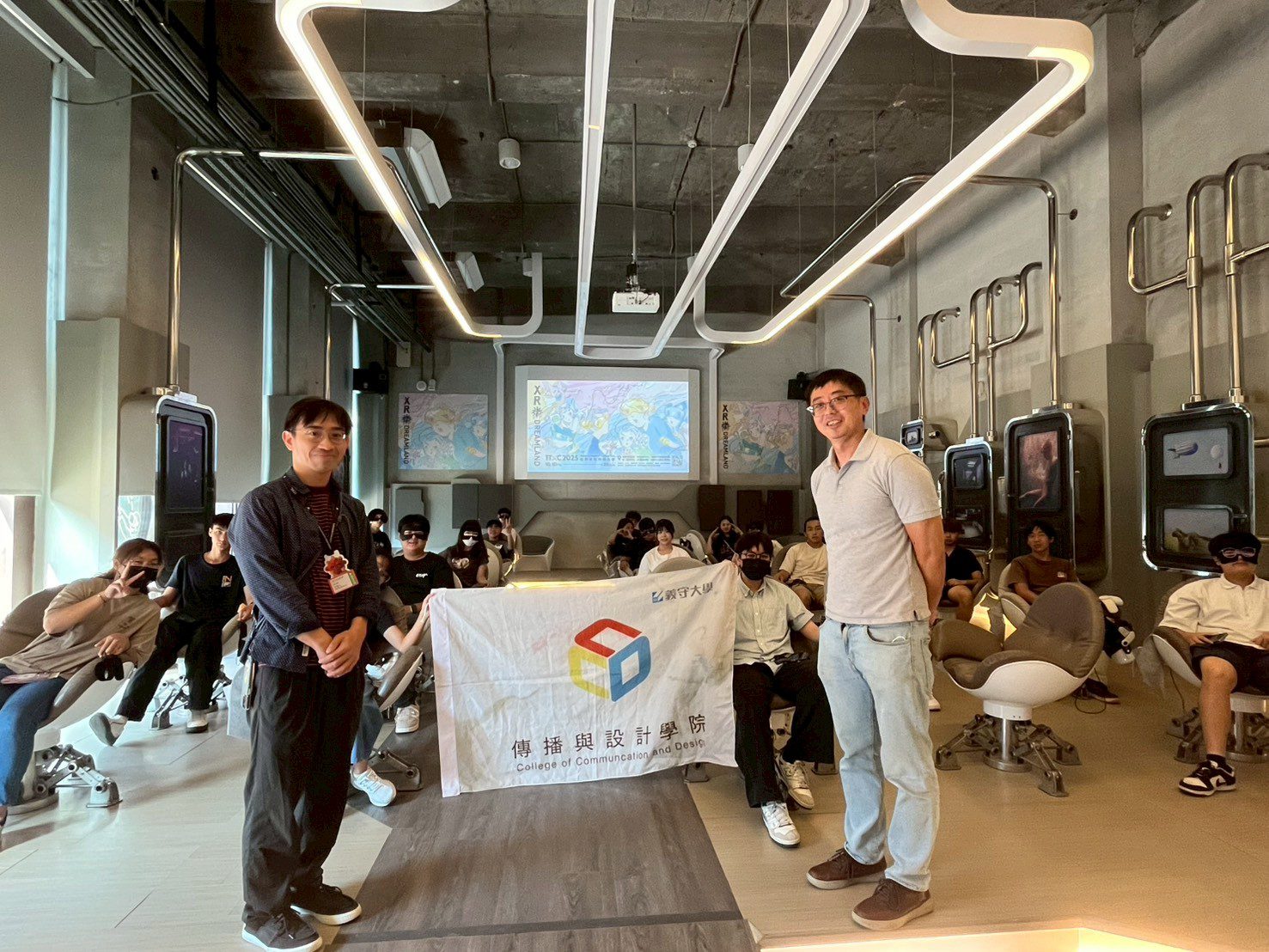 10月13日走讀課程中,學生們於全國首座可播放8K立體影像的VR劇院,欣賞了挑戰感官邊界的《寂靜》、描繪水下人際互動的《舞池漫波》,以及探討「網路斷線焦慮」的《想嚮》三部作品。學生們透過親身體驗科技藝術與創作思維,進一步理解敘事手法、空間構成與互動設計的奧妙。課程指導教師陳嘉暐指出,此次走讀不僅是觀展活動,更是一次創造力與未來職能實踐的學習歷程。此外,課程亦特別邀請高雄電影節 「XR DREAMLAND 」策展人王冠人,介紹榮獲威尼斯影展沉浸式單元大獎的《雲在兩千米》,以及探討社會正義與互動判決議題的《一封來自法庭的邀請函》,兩部台灣原創XR作品,讓學生深刻感受台灣在XR創作與應用領域的厚實能量與國際競爭力。