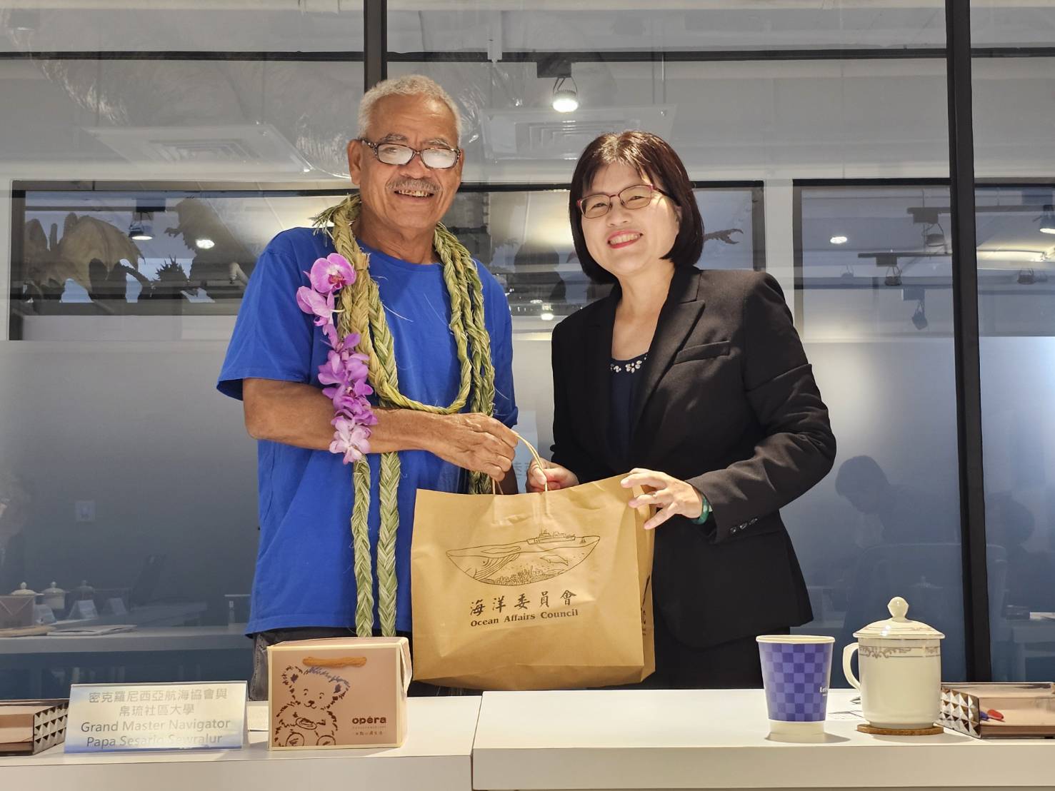 密克羅尼西亞航海協會Grand Master Navigator Sesario Sewralur今(23)日上午,在國立中山大學謝百淇教授、國立臺灣海洋大學陳建文副教授、國家級帆船教練謝俊義先生及「島嶼DNA:星羅引航探尋南島連結與永續路徑」計畫團隊成員陪同下,拜會海洋委員會,由科技文教處林麗英處長主持接見,雙方就傳統航海知識復振、南島文化教育推廣及國際合作,進行深度交流對談。