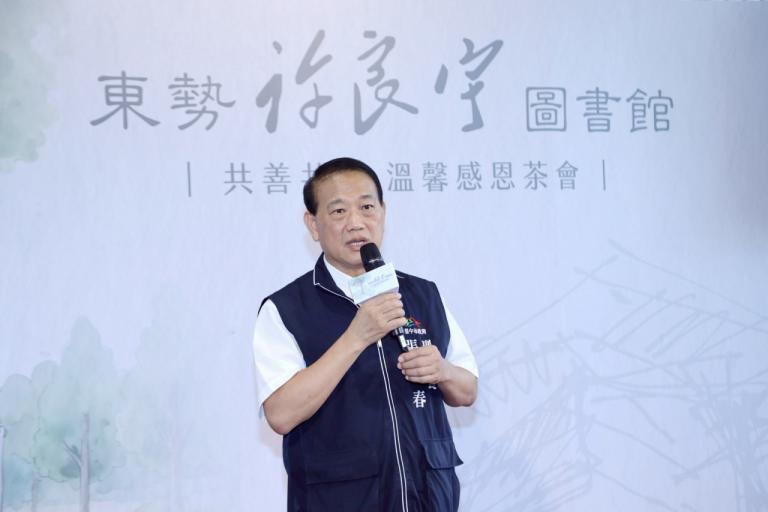 副秘書長張大春代表盧市長出席致詞表示,感謝許景堂伉儷以大愛回饋社會,捐資新臺幣1億2,000萬元,市府亦編列逾7,300萬元進行裝修與停車場經費,共同打造這座凝聚愛與知識的文化殿堂。這份從思念萌芽的心意,成為「小愛化為大愛」的最佳詮釋,不僅讓東勢擁有兼具全齡化、智慧節能與友善安全的現代化圖書館,也為臺中增添一份溫度與幸福。
