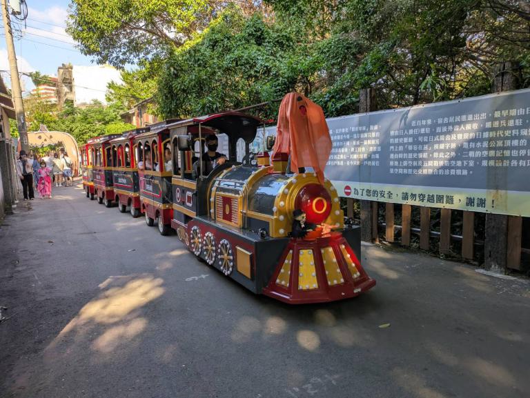 ▲受大小朋友歡迎的「鐵道奇航」活動,也從下午2點起,在台鐵舊宿舍廣場展開,大家歡愉搭乘著小火車緩慢繞行舊宿舍區內進行導覽遊賞,班次每十五分鐘開出一班。(圖╱記者孔亮云翻攝)